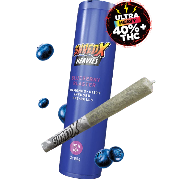 Get ready to get blasted, blueberry style, with our new SHRED-X Heavies. These Blueberry Blaster infused pre-rolls deliver an aromatic and smooth blueberry and kush burn experience, and with the added distillate and pure THCa crystals, they are definitely NOT for lightweights. Boasting an ultra-heavy +40% THC, in a single doob tube, this trio of 0.5g infused pre-rolls are ideal for sharing or getting heavy all by yourself.